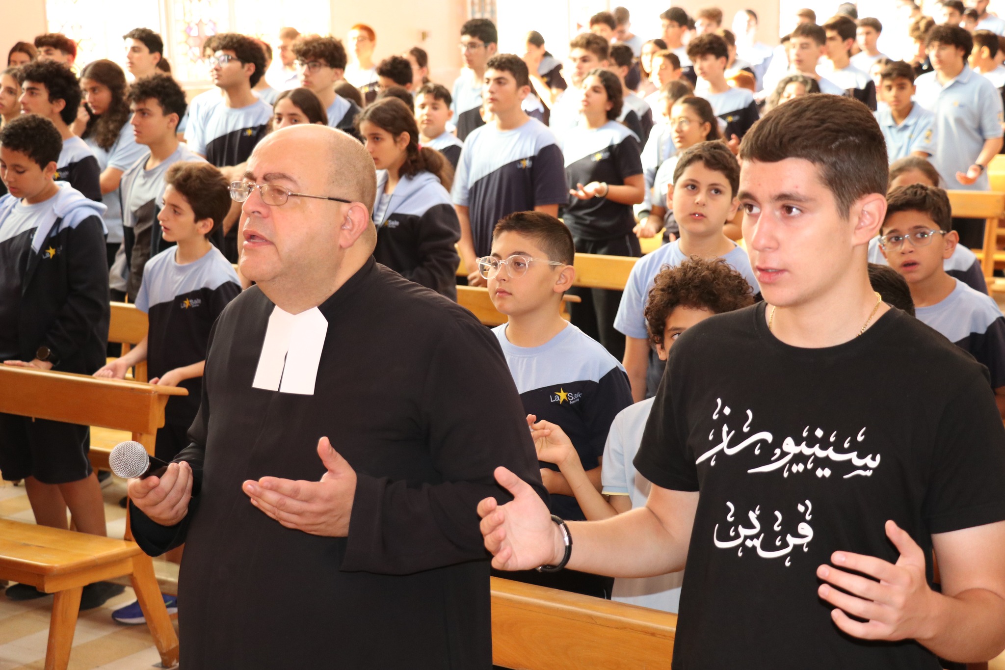 Students from the second and third grades celebrated the Feast of the Exaltation of the Holy Cross in an atmosphere filled with love and brotherhood that unites us. We prayed together for peace in Lebanon and Gaza, asking for relief from their hardships. We pray that God grants the world peace and tranquility, and that the cross remains a symbol of hope and strength in our hearts.